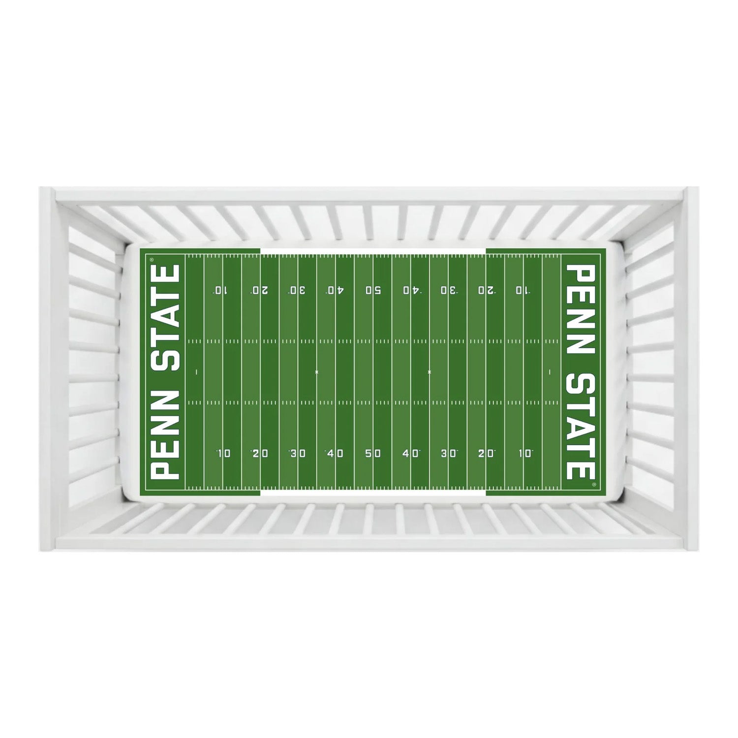 Have your little fan dreaming of touchdowns on Penn State Nittany Lions StadiumSheets™ Crib Sheets! This crib sheet designed to look just like the field at the Beaver Stadium in University Park, PA. The Penn State Nittany Lions StadiumSheets™ Crib Sheets has the official Nittany Lions branding along with all the elements of the football field like yard lines, hash marks, and end zones.