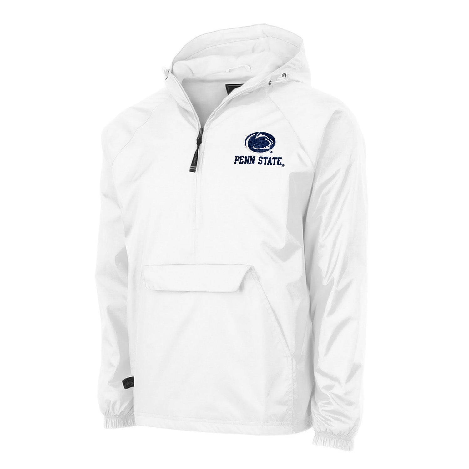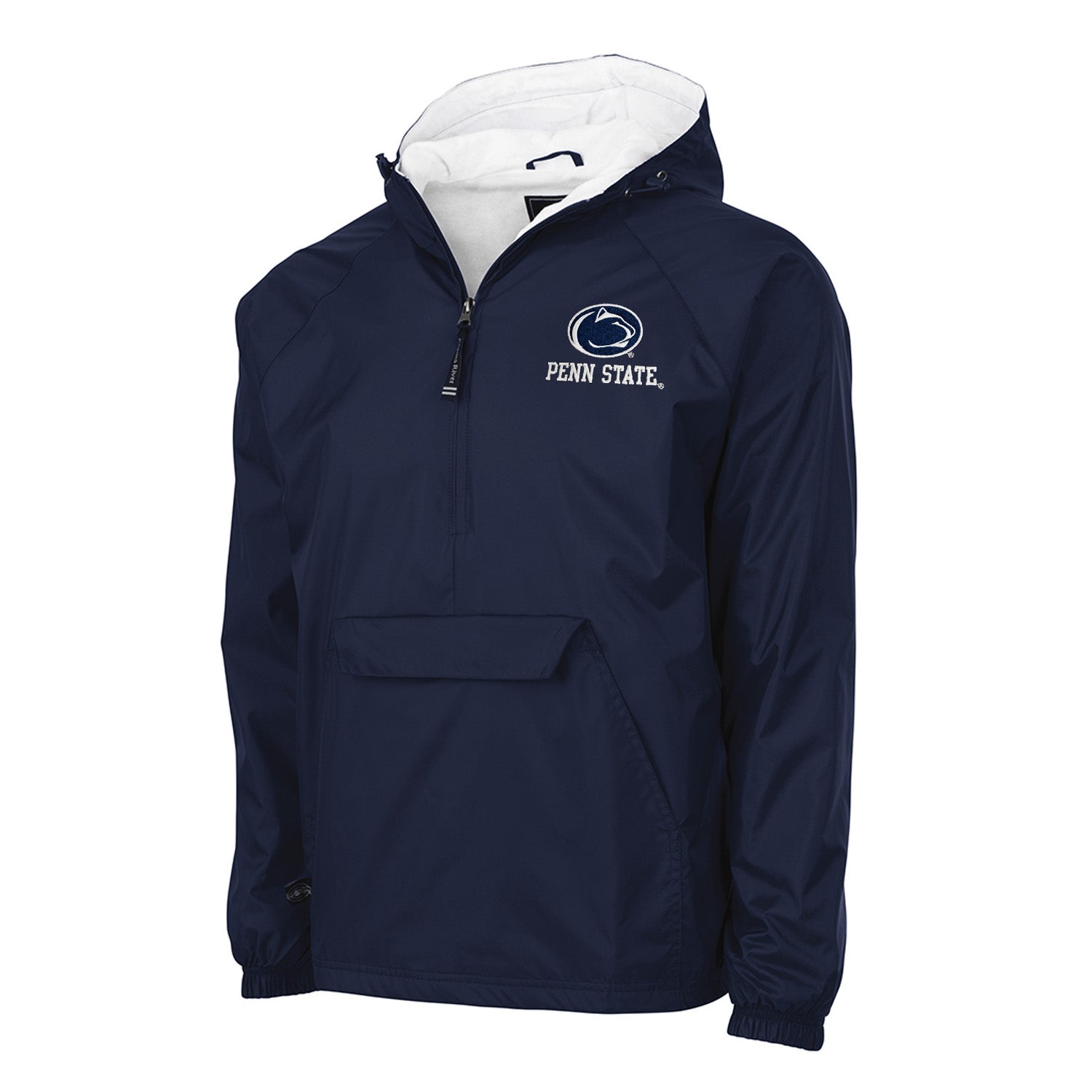 There's no better way to stay warm than with this half-zip Penn State pullover jacket. The Nittany Lion logo and Penn State word mark have both been embroidered on the left chest of this half-zip pullover jacket. The Charles River word mark has been woven into the zipper's fabric tag.