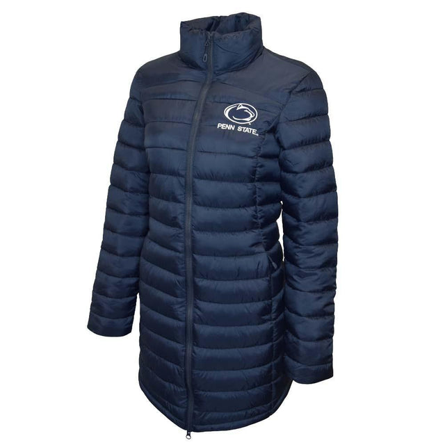 Stay cozy and warm in the cold weather with this Penn State women's long puffy jacket. With two side zippered pockets, embroidered graphics, and extended body length to keep you warm, this jacket is sure to be an instant favorite for any Nittany Lion fan!