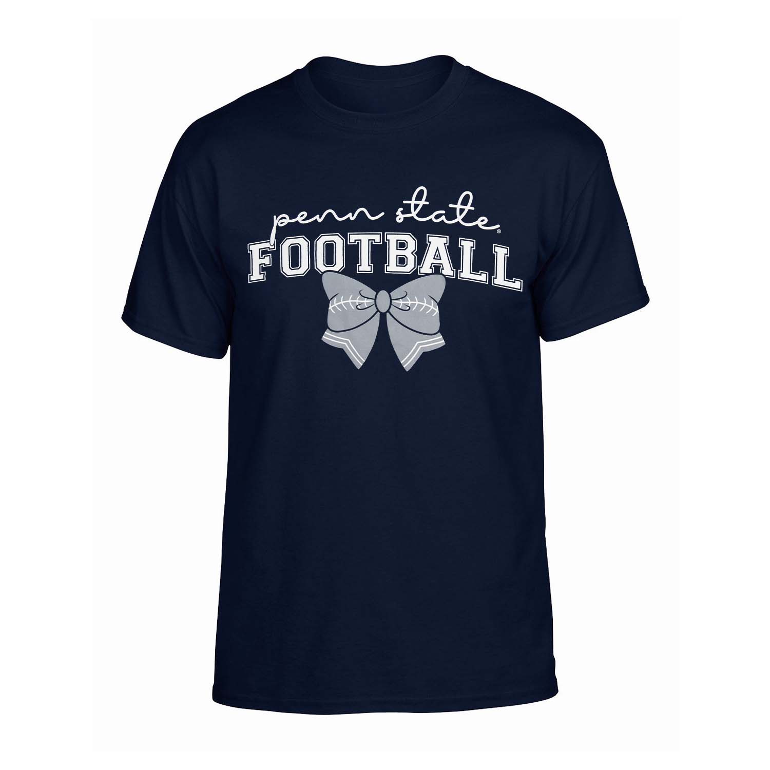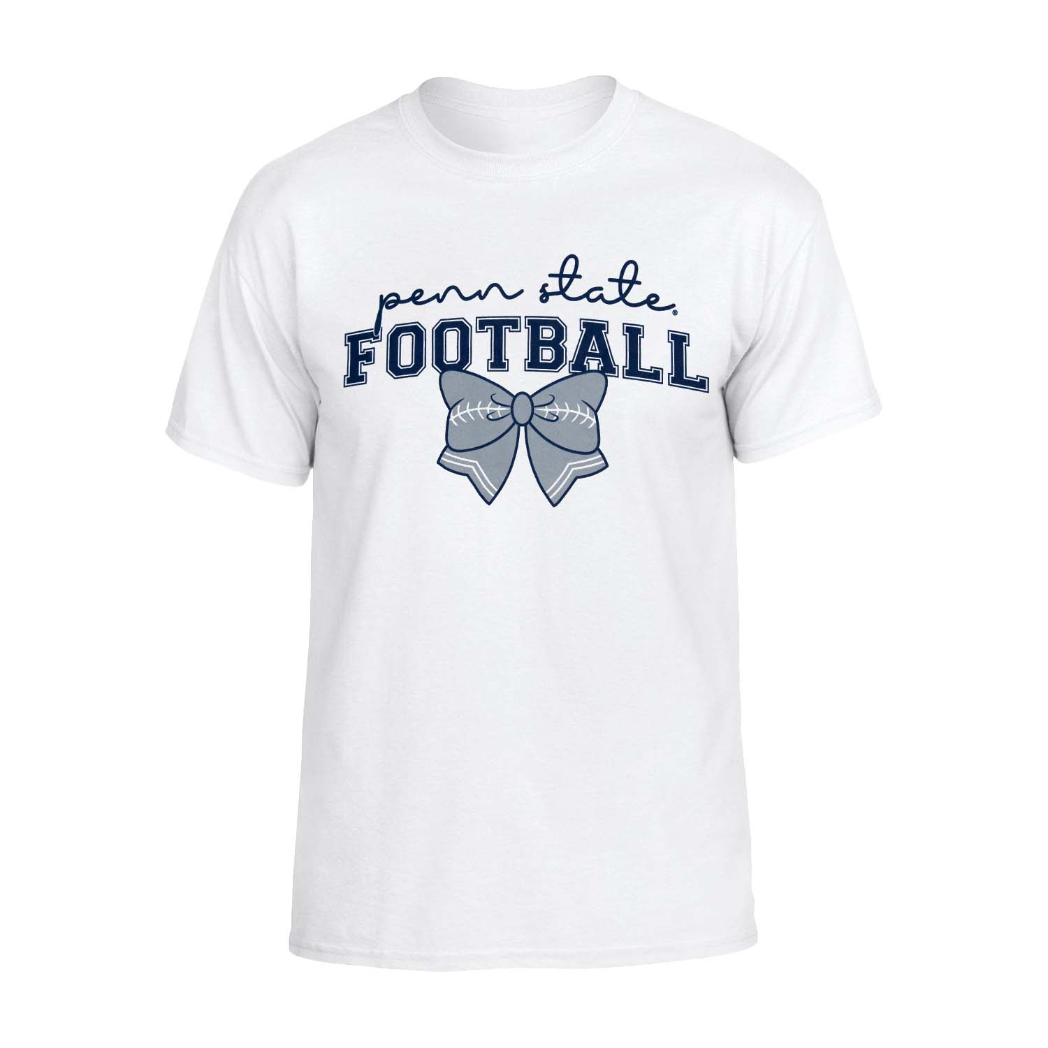 Show your Penn State pride with a playful touch in this women's football bow t-shirt! Featuring a cute bow detail and a comfortable fit, this tee is perfect for game days or casual wear.