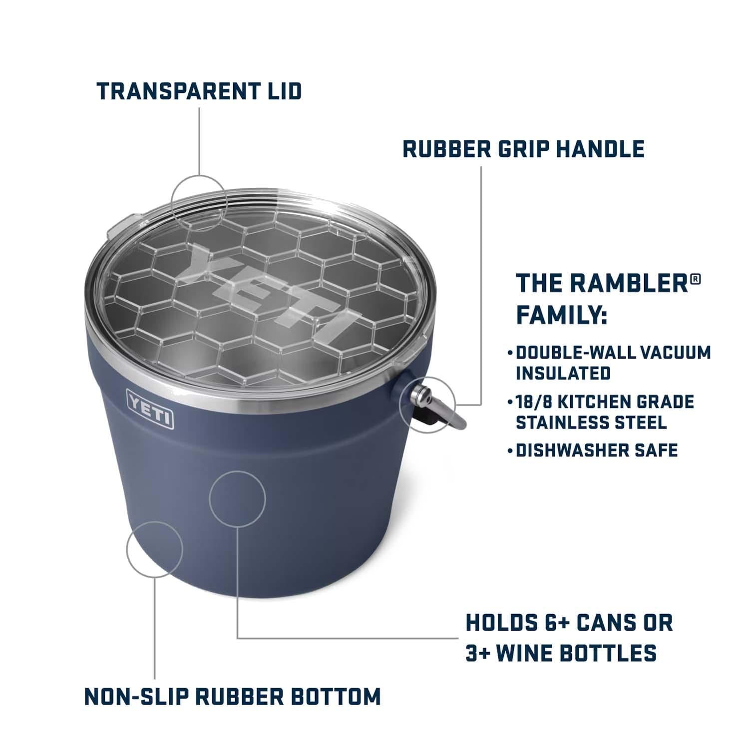 Be the talk of the tailgate with this durable stainless steel YETI® Rambler® beverage bucket! Its large capacity and rotating handle make it easy to haul your party beverages.