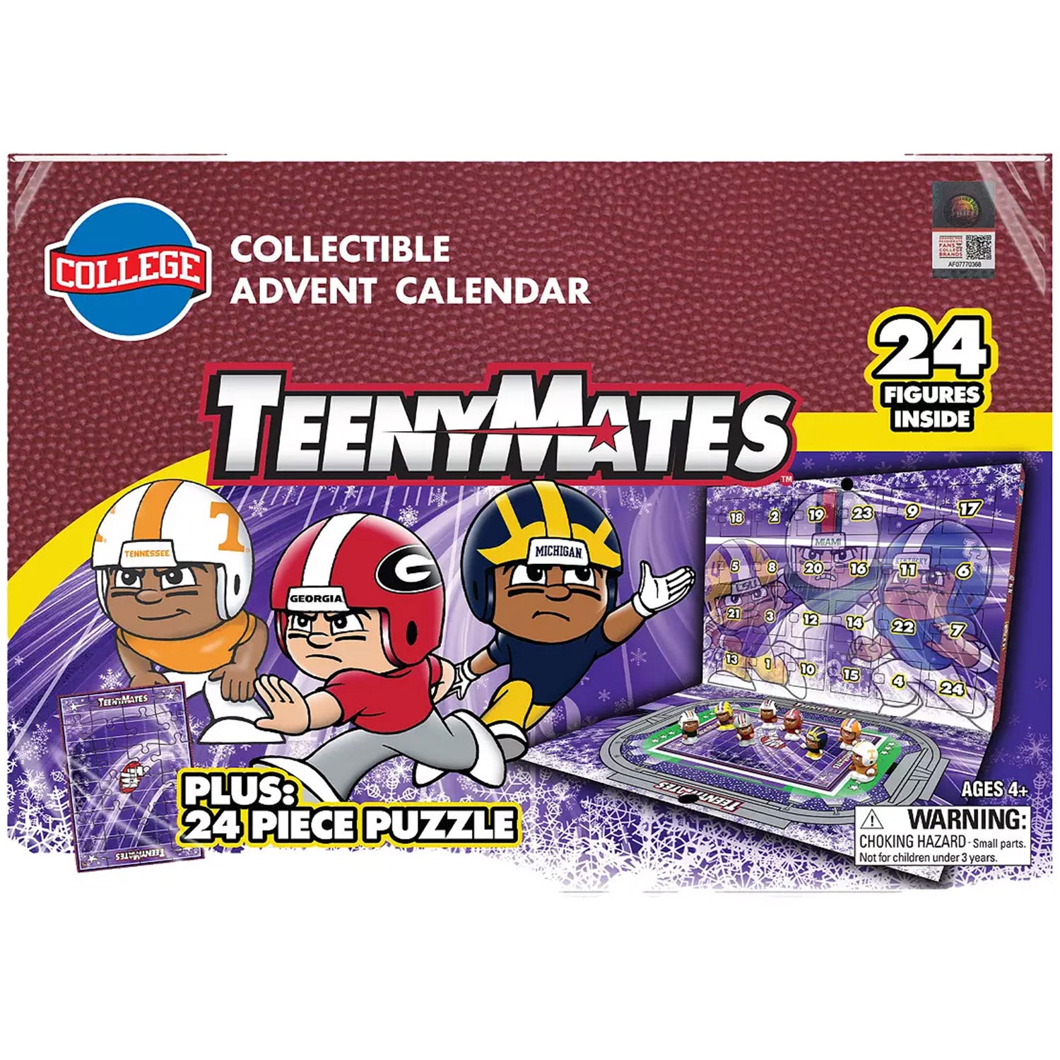 Get ready for the ultimate holiday countdown with the College Football TeenyMates Advent Calendar! Each day reveals a surprise from your favorite college teams, including exclusive TeenyMates figures, puzzle pieces, and more! Ages 4+ Includes 24 days of surprises!